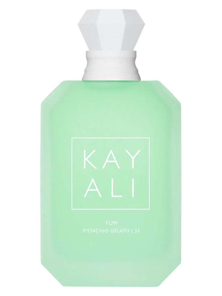 Yum Pistachio Gelato | 33 by Kayali Fragrances is a Floral Fruity Gourmand fragrance for women and men. This is a new fragrance. Yum Pistachio Gelato | 33 was launched in 2023. Yum Pistachio Gelato | 33 was created by Olivier Cresp and Sébastien Cresp. Top notes are Pistachio, Ice cream, Bergamot, Hazelnut, Rum and Cardamom; middle notes are Lily-of-the-Valley, Pear, Jasmine, Peony, Geranium, White Peach and Raspberry; base notes are Whipped Cream, Marshmallow, Cotton Candy, Tonka Bean, Loukhoum, Sandalwood, Cacao and Cedar.